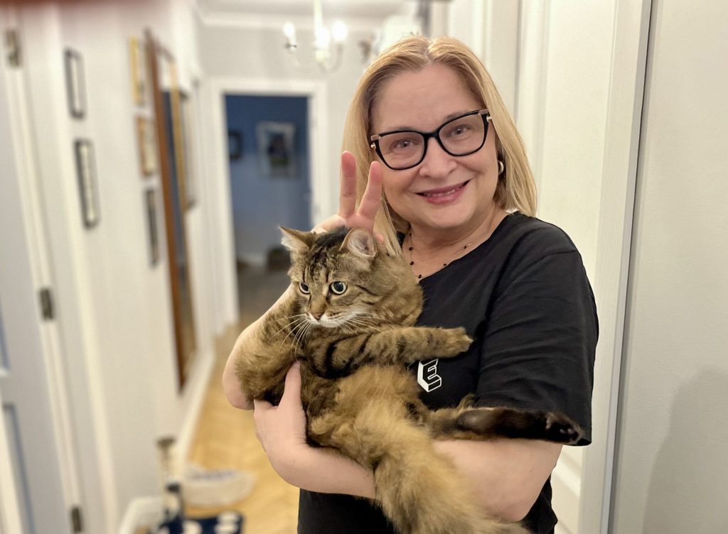 Sigur că soțul meu a protestat, că cine are grijă de ea, ce ne facem când plecăm, cu cine o lăsăm, că mâncare, că litieră, că doctori…
