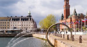 Orașul este legat printr-un pod rutier și feroviar de 8 km, Podul Oresund, (fabulos!!!) cu Danemarca, mai exact de Helsingor, mai cunoscut datorită lui Shakespeare, ca Elsinore, locul unde Hamlet și-a jucat rolul…