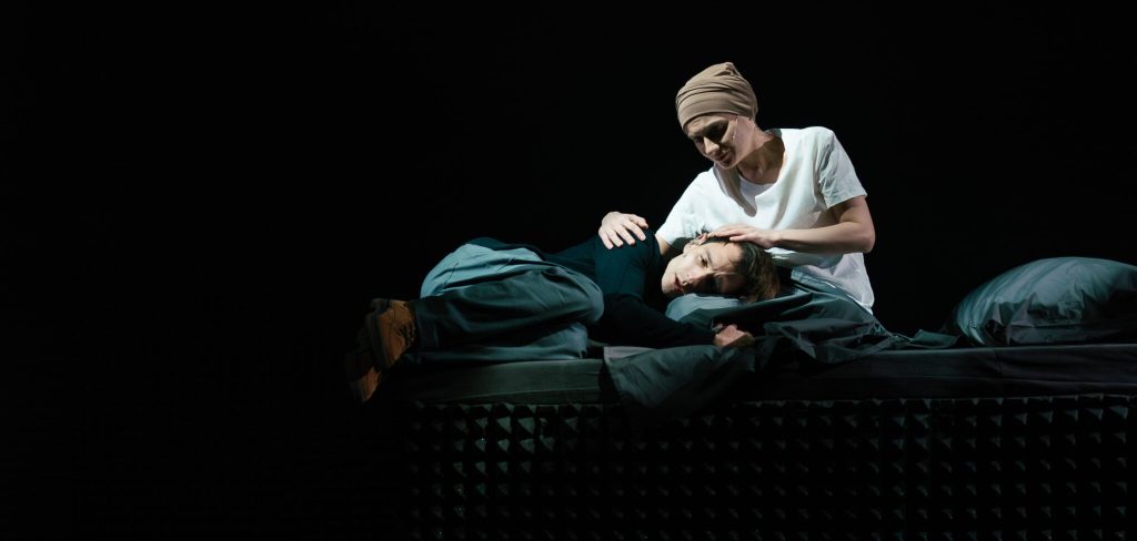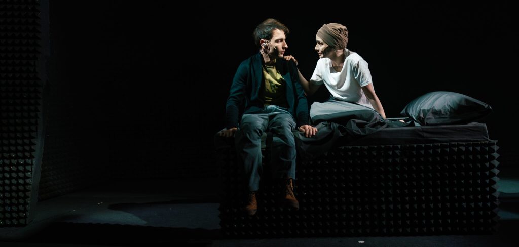 Bine, o experiență de genul acesta este oricum personală, dar faptul că fiecărui spectator i se dă o cască în care aude întregul spectacol, ca la radio, îl ajută să sondeze în adânc, acolo unde fiecare își cunoaște fricile cel mai bine. Ajută mult scenografia Clarei Popa, pentru că decorul realizat din panouri antifonice păstrează orice sunet și respirație în formă pură.