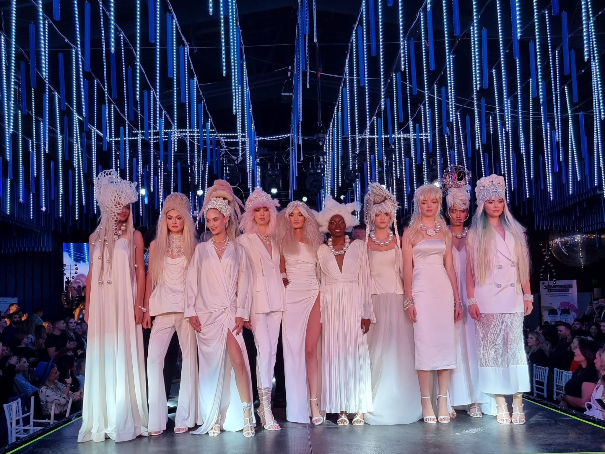 Cei cinci au urcat pe scenă pe muzica surorilor Oșoianu, având modele îmbrăcate cu pelerine cusute cu modele românești. După ce au fost coafate de stiliștii români, fetele s-au ridicat în picioare, și-au dat jos pelerinele și au rămas în ținutele albe alese de stilistul Dragoș Constantin care le-a adus din România de la @vpmatelier @trialfa @vintagebazaar @vintagelady @nymphaclothing.