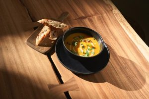 Și, așa cum locul este simplu și rafinat în același timp, așa este și meniul care nu promovează abundența fără rost, nu slăvește lăcomia sau îmbuibarea grețoasă, ci oferă plăcerea culinară a omului care se bucură de viață, de călătorii pline de gust, fără să-i forțeze buzunarul. Mâncarea este onestă și se vrea a fi o punte care leagă oamenii, care, de fapt, le îmbină poveștile… Ingredientele sunt de calitate, prețurile sunt mici în comparație cu alte locuri de un calibru asemănător, deși eu nu prea știu care ar fi acelea în București …