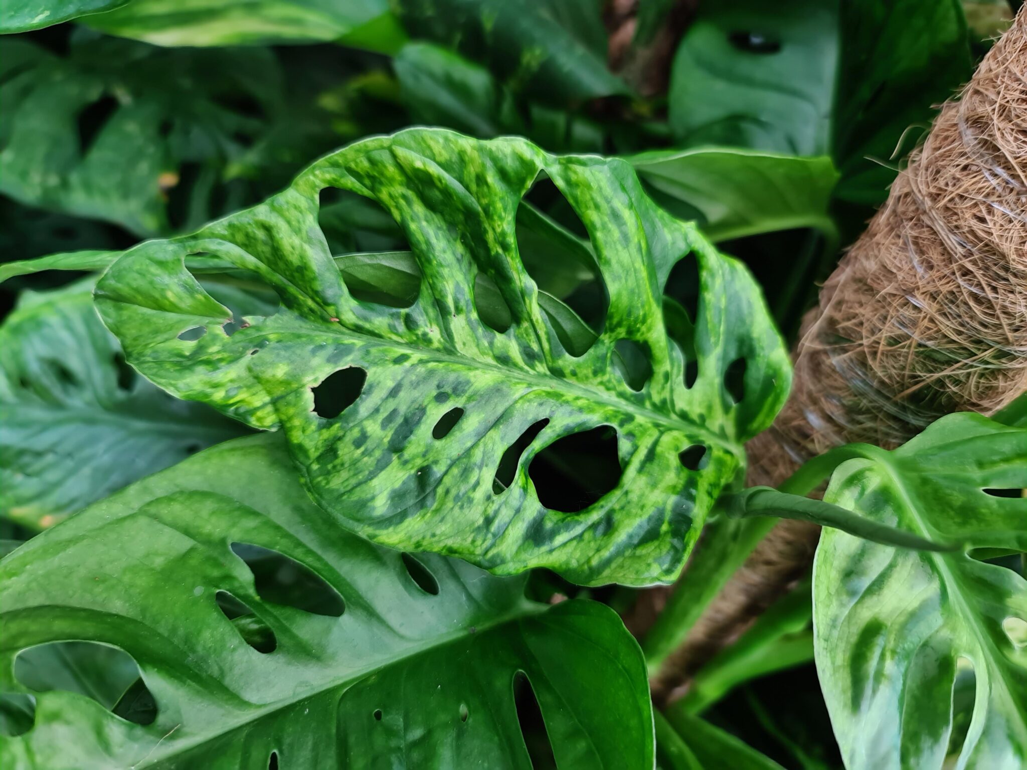 Pare a fi o Monstera adansonii cu un nou tip de variegație, dar nu e. Adică în realitate ce vedeți în poza de mai sus este o regular Monstera adansonii, care s-a procopsit cu un pui de virus mozaic.