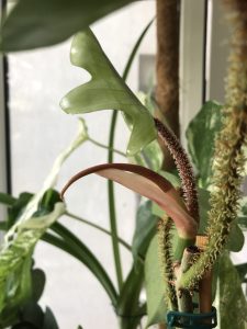 Îmi tot făceam de lucru în weekend pe lângă zona cu Philodendroni și mă minunam de una singură cum Monsterei Deliciosa variegata îi dă a doua frunză nouă în mai puțin de două luni, cum lui Philo squamiferum i-a dat o frunză nouă săptămâna trecută, Philo pink princess are trei frunze noi și două pe drum, Philo sodiroi – despre care povesteam săptămâna trecută – la fel, am pierdut numărul lor la Philo lime lemon și la Philo Xanadu lime, Alocasia infernalis black magic are deja două frunze noi și în general tuturor Alocasiilor le-a mers excelent in ultima perioadă.