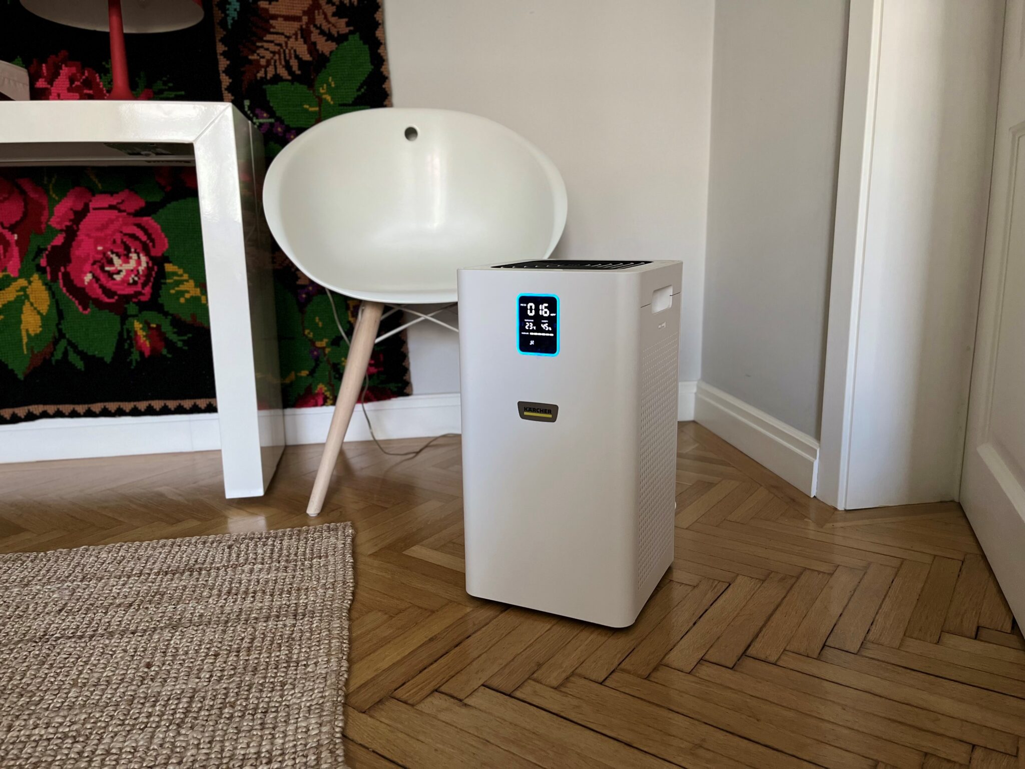 Așa că ajutorul a venit sub forma unui aparat de purificat aerul și de captat mirosurile, și anume un Kaercher AF 20. Are filtre HEPA13, cărbune activ, îndepărtează praful, alergenii, mirosurile. Are temporizator, mod de funcționare pentru perioada nopții, este ultrasilențios, că asta îmi mai trebuia, pe lângă poluarea aerului și una fonică! Așa că elementul ultrasilențiozității a fost esențial pentru mine.
