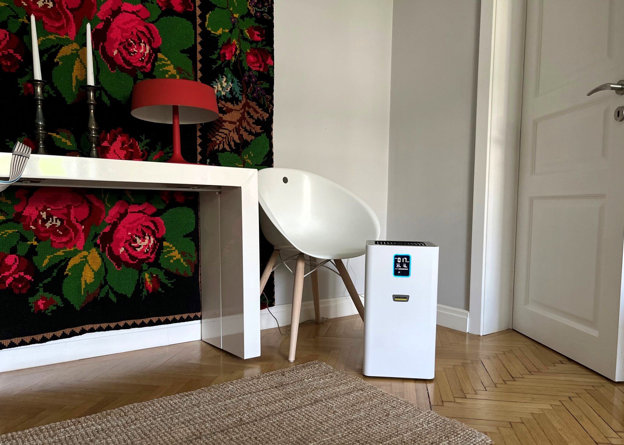 Așa că ajutorul a venit sub forma unui aparat de purificat aerul și de captat mirosurile, și anume un Kaercher AF 20. Are filtre HEPA13, cărbune activ, îndepărtează praful, alergenii, mirosurile. Are temporizator, mod de funcționare pentru perioada nopții, este ultrasilențios, că asta îmi mai trebuia, pe lângă poluarea aerului și una fonică! Așa că elementul ultrasilențiozității a fost esențial pentru mine.