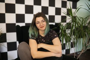 (Când vorbeam cu ea pe Zoom îmi venea în minte numai „fată verde cu părul pădure!”- din Phoenix…)