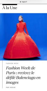 Am fost foarte fericită sezonul ăsta. Am avut un feedback foarte bun de la redacția Vogue Paris, ceea ce m-a făcut foarte fericită.