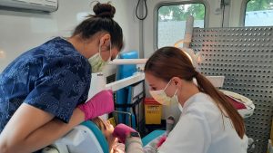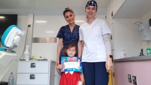 Conectează la servicii stomatologice copiii din mediul rural, prin cele două cabinete stomatologice mobile pe care le avem în care lucrează medici voluntari. Conectăm cu ajutorul lor zona rurală la sănătatea orală, pentru că ultimele statistici ne spun că nu există niciun cabinet în zona rurală care să aibă contract cu Casa de Asigurări. Mâine plecăm de exemplu la 5 dimineața pentru a merge într-un sat aflat la 3 ore de București unde ne vom ocupa de copiii de acolo.