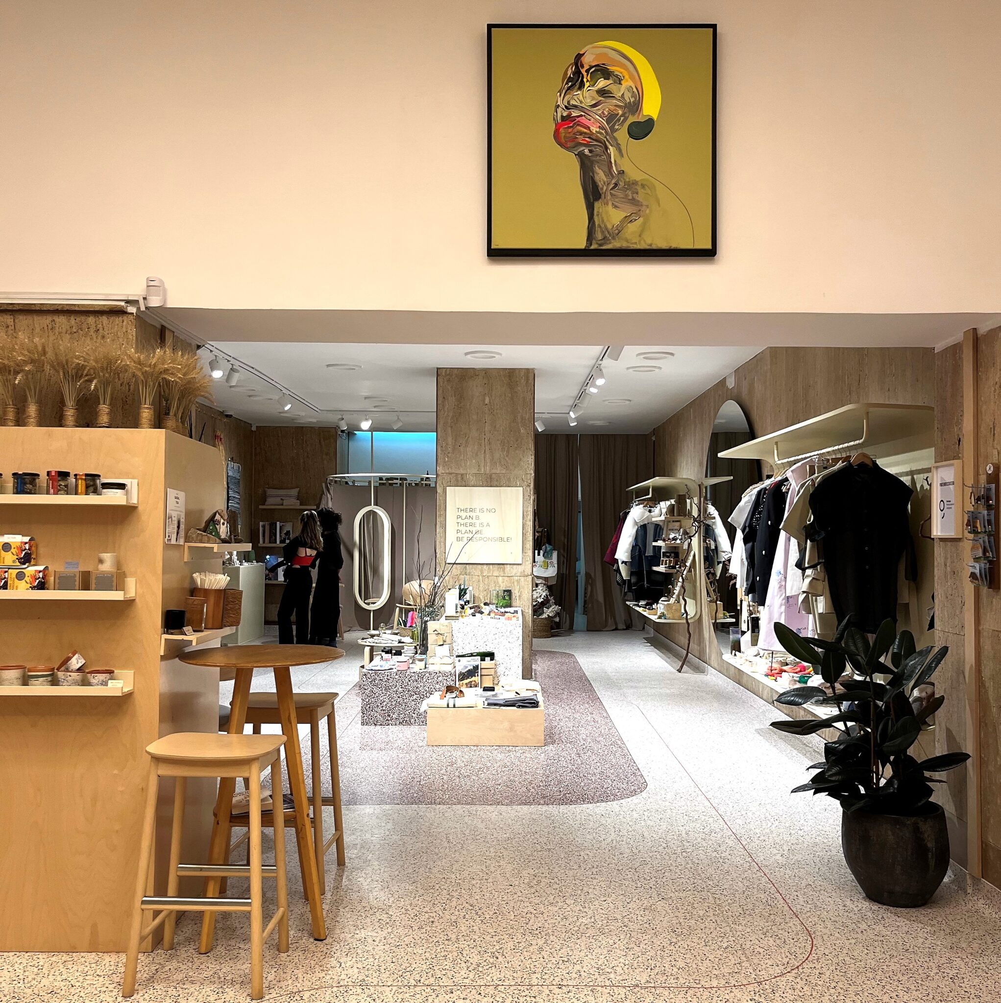 „Poartă o faptă bună”… Frumos. Și de aici, din acest superb magazin se pot cumpăra lucruri pe care apoi să le porți ca pe o faptă bună.