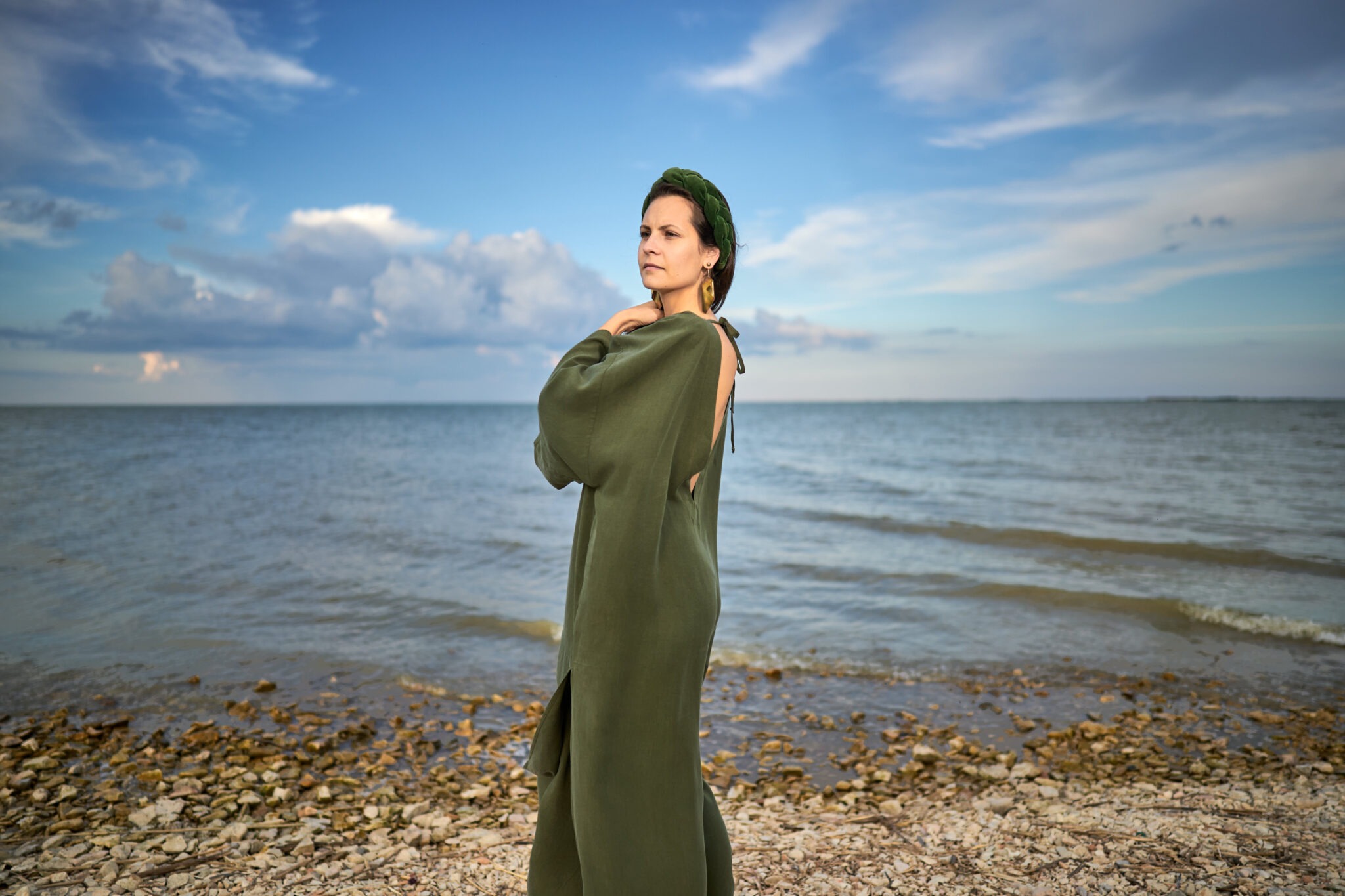 Pentru că am vrut să fac cum făcea ea, adică sustenabil (fără să știe că asta va de veni un stil mai târziu) luând capete de linii și materiale care prisoseau altora, anul trecut am colindat mai multe depozite căutând materiale organice, naturale, care să „cadă” bine. E necesar un astfel de material care să nu încarce nici produsul, nici prețul, pentru că ideea este ca femeile să-și poată permite să cumpere un caftan.