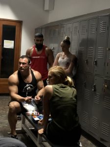 Sacramento, CA – Mariana in gym locker room with Tony as he prepares PED injections for himself and friends. (Credit: National Geographic)