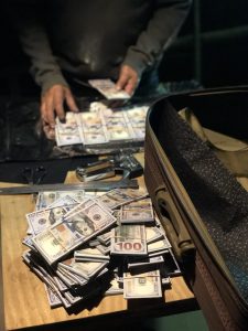 Lima, Peru – A man packing a suitcase with money. (National Geographic)