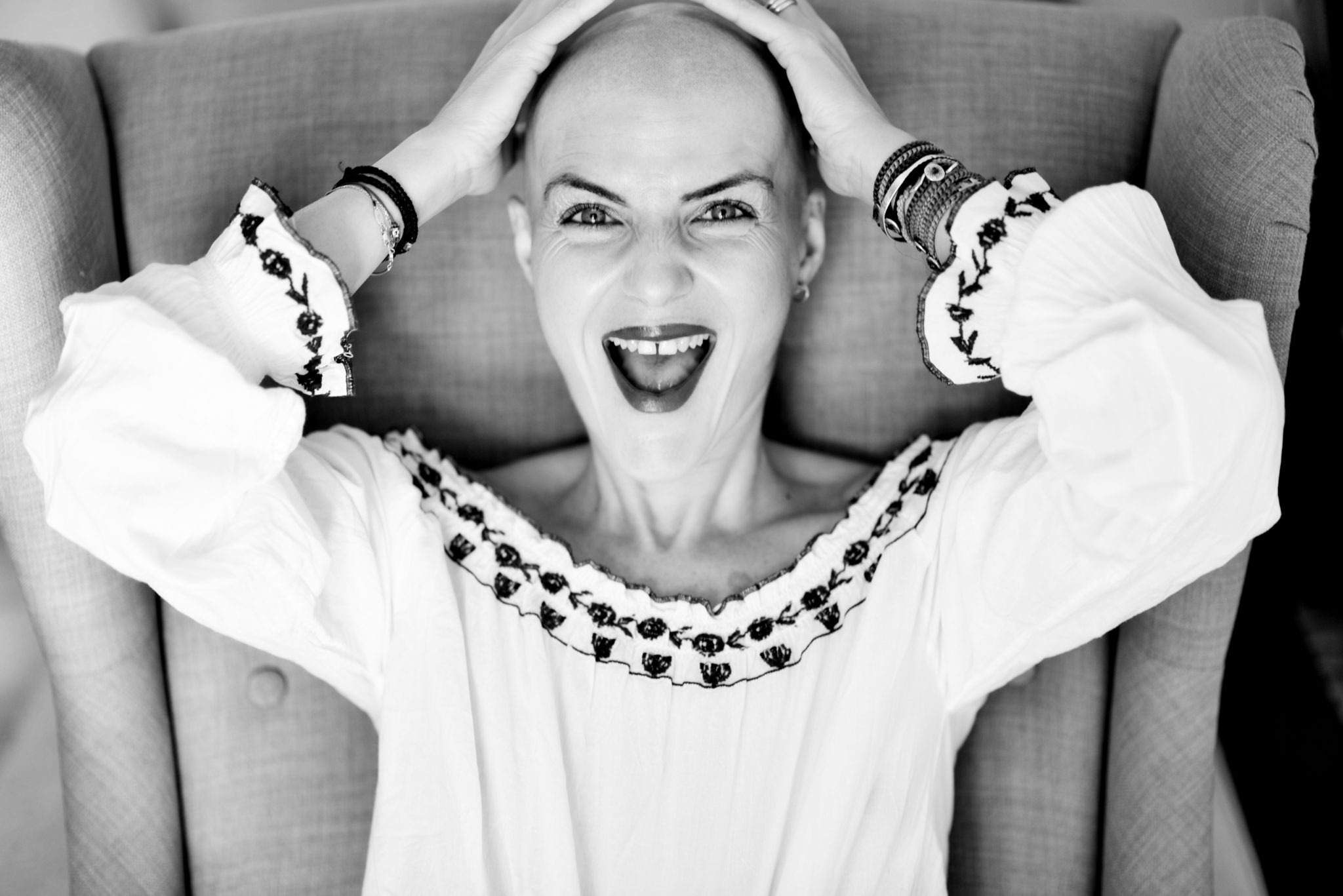 Nu mi-a fost frică, dar a fost foarte perversă senzația, pentru că încercam să îmi imaginez momentul și să-l iau ca atare… Să încerc să văd ultima clipă. Și încercam să mă pun în ultima clipă. Mental. E foarte ciudat pentru că, pe de o parte îmi dădeam seama cât de mult iubesc viața, pe de alta că e nesemnificativă și că dincolo te așteaptă altceva pe care nu știam să-l definesc, doar îl intuiam… un necuprins și un infinit care dădea sens să îndrăznesc să doresc să mor. Era ceva ce nu pot încă să explic, dar de fiecare dată simțeam asta. Mă bucuram că nu aveam conștiința încărcată cu nimic, că dacă ar fi să se întâmple acum, aș muri cu sufletul liniștit… Mi-am dat seama că sunt mult mai puternică decât știam că sunt sau decât credeam eu despre mine că sunt. Pentru că durerea fizică e un exercițiu și credeam că fizic o să clachez. Dar m-am bucurat să-mi descopăr un corp foarte generos pe care l-am subestimat 39 de ani. Am scris în album despre căderea părului pentru că e o traumă pentru 99% dintre femei. La mine a fost o revelație. M-am îndrăgostit de mine. Nu înțelegeam cum poți să te îndrăgostești de tine și tot timpul mă gândeam că e narcisim. Ei bine, m-am îndrăgostit de mine și mi-am dat seama și de ce. Eu am fost copil crescut cu foarfeca. Mama mă tot tundea când eram mică. Și la 16 ani am decis să-mi las părul lung. Și de la 16 până la 40, fiecare cm pe care îl tundeam, era o dramă. Aveam părul lung, îl purtam în codițe, aveam grijă de el de parcă erau sfintele moaște. Când m-am ras, am zis Doamne Dumnezeule, eu asta sunt! Până atunci fusese ceva în mine care nu era la locul lui și nu am știut niciodată să-l prind, să-l definesc…
