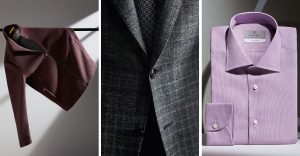 Cu un costum „Impeccabile” 2.0. Este lansat de curând, se numește Impeccabile și se adresează businessman-ului. Omul de afaceri care călătorește mult, care are întâlniri și care are nevoie să fie mereu mereu elegant, impecabil, indiferent de condiții. Este un stereotip, acesta cu călătorul care pleacă de la Paris la Tokyo și care ajunge acolo și la hotel își dă costumul la călcat sau la aranjat pentru meetingul următor. Ei bine, această țesătura nouă este adaptată noilor condiții. Călătorul nostru ajunge la Tokyo, scoate costumul din valiză și-l îmbracă pentru întâlnirea la care este așteptat, arătând impecabil. Acesta este un proiect pe care l-am dezvlotat în Italia în care materialele naturale sunt țesute într-un anume fel care dă fibrelor o caracteristică specific. Este creat pentru nevoile speciale ale clientului nostru, bărbatul activ.