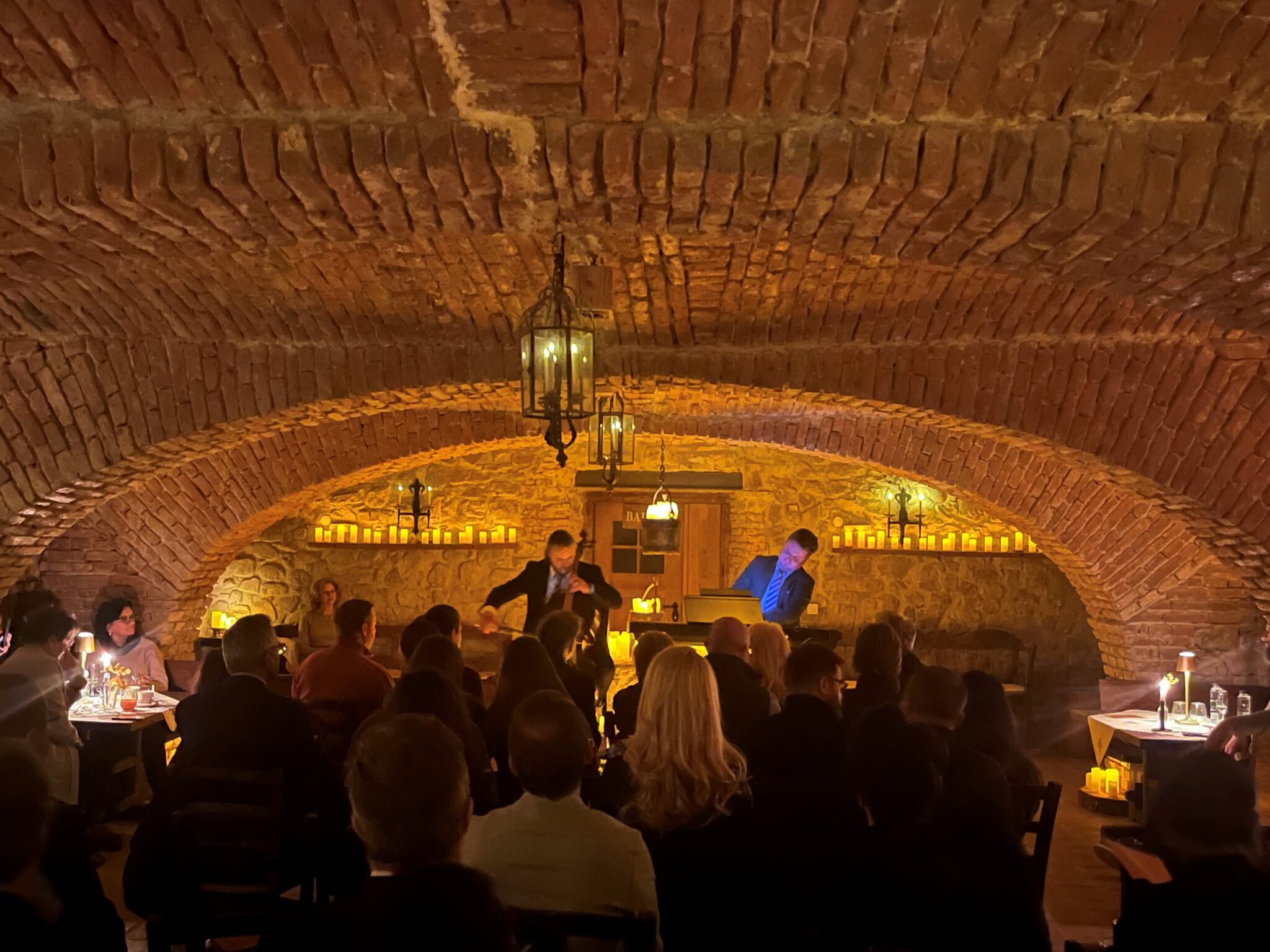 Și atunci m-am consultat cu fiii mei și am ajuns la concluzia că am putea face altceva care să intereseze publicul larg, așa că am inventat „Concertele la lumina lumânărilor”, un amestec între muzica contemporană și cea clasică, într-o atmosferă foarte relaxată, inedită, așa cum oferă pivnița noastră… În plus, e de basm ceea ce facem noi aici într-o oră și jumătate.